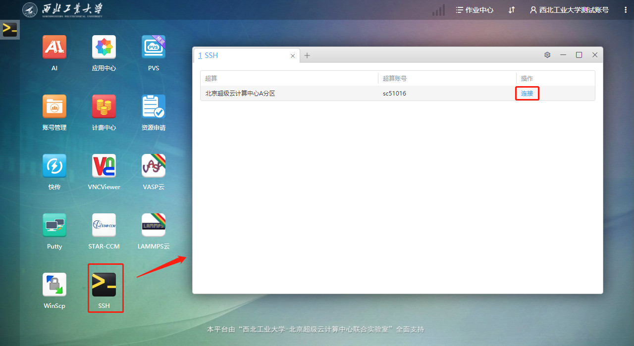 4、然后点击桌面“SSH”图标,即可使用由并行科技研发的命令行工具,开始使用命令行方式提交作业。