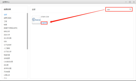 5、如果您想使用图形化方式提交作业,点击桌面“应用中心”图标,搜索您想要的应用,点击申请使用。
