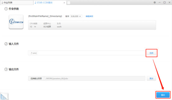 6、点击弹出页面中的“提交作业”按钮,打开STAR-CCM的提交页面。