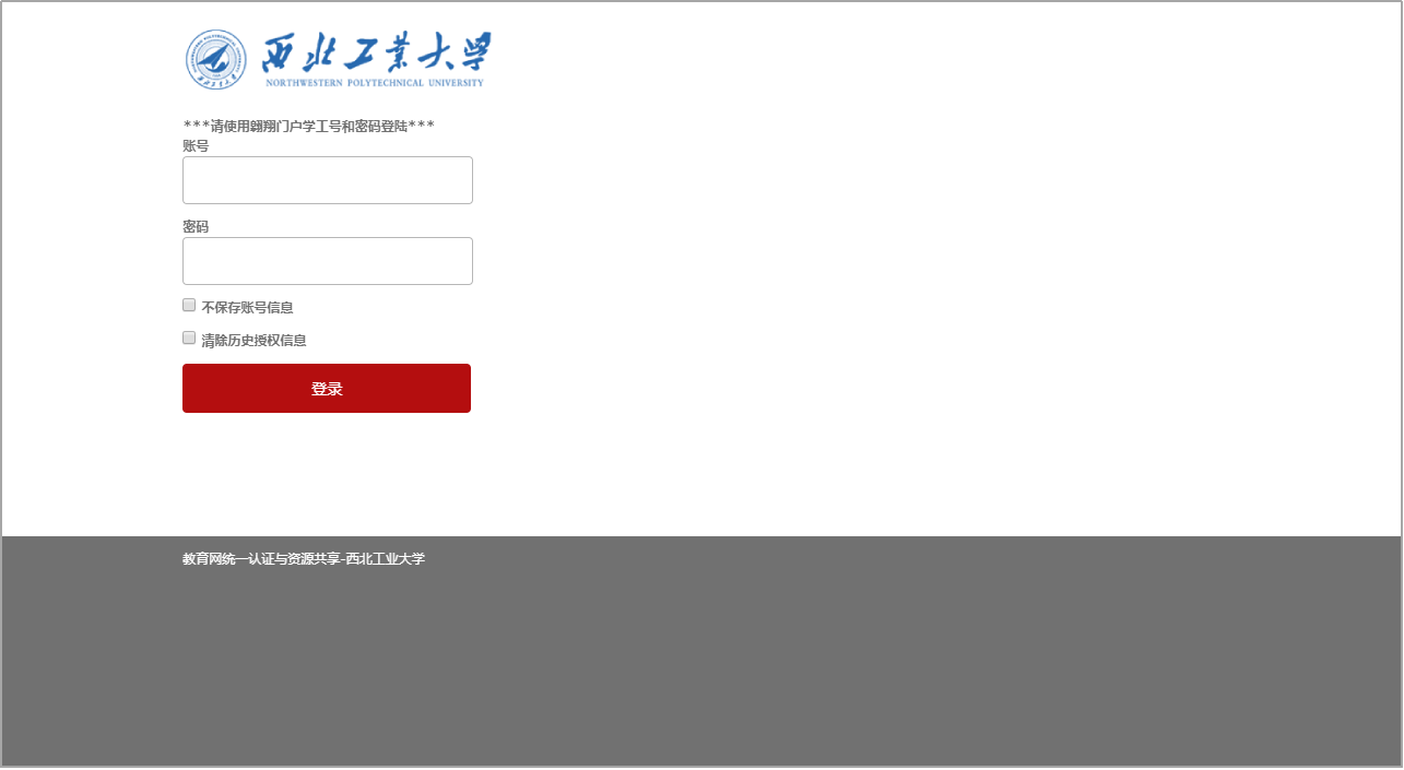 2、启动软件,登录页面打开后,使用西北工业大学统一身份认证账号登录即可。