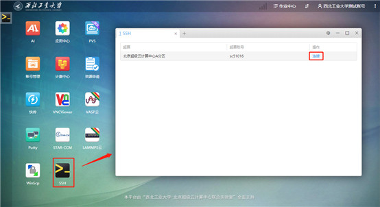 4、然后点击桌面“SSH”图标,即可使用由并行科技研发的命令行工具,开始使用命令行方式提交作业。